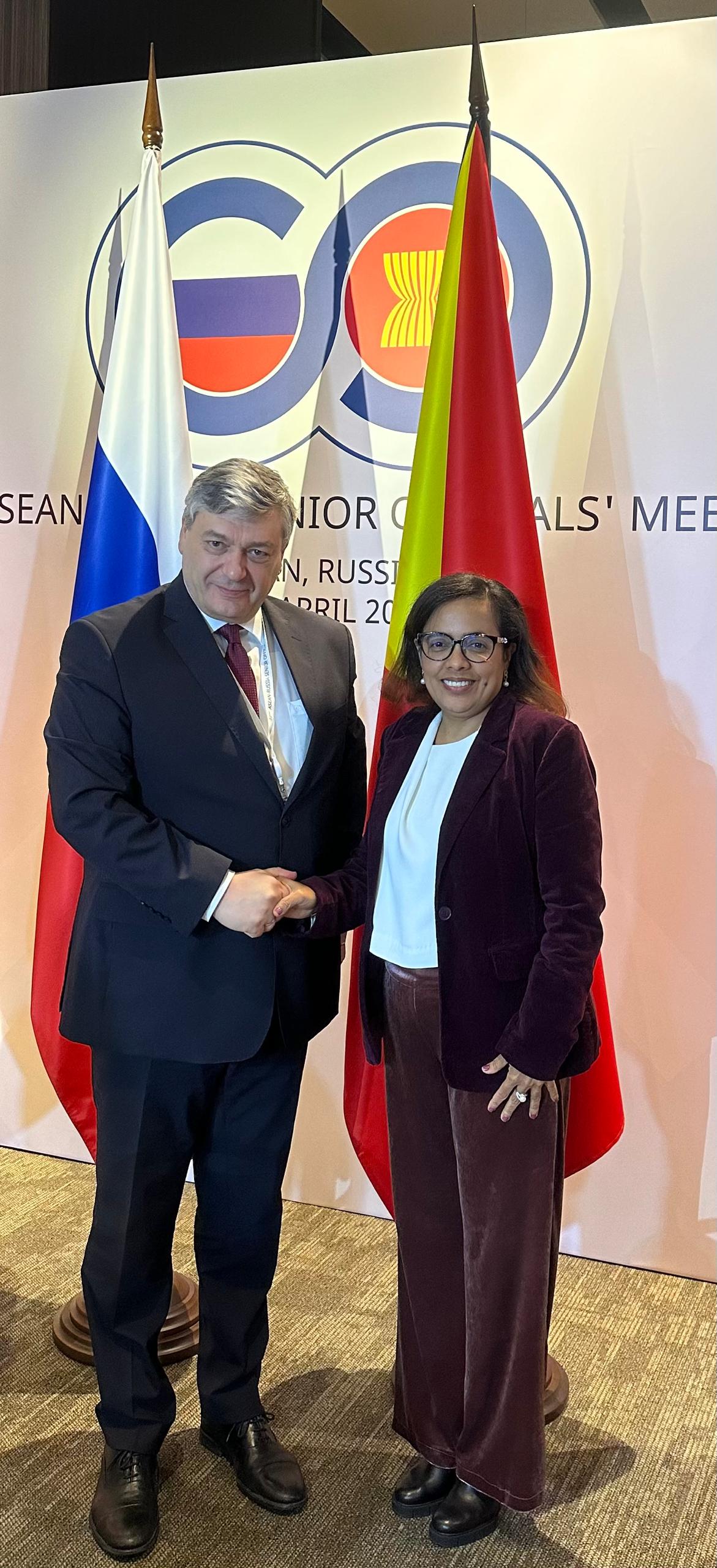 A Vice-Ministra para os Assuntos da ASEAN, Milena Rangel, liderou a delegação de Timor-Leste na 22.ª Reunião de Altos Funcionários ASEAN-Rússia (ARSOM), que teve lugar nos dias 20 e 21 de abril de 2026, em Kazan, na Rússia. Este evento assinalou o 35.º aniversário das relações entre a ASEAN e a Rússia, constituindo a primeira participação de Timor-Leste neste mecanismo desde a sua adesão plena à organização regional, segundo a comunicação social de Timor-Leste.
